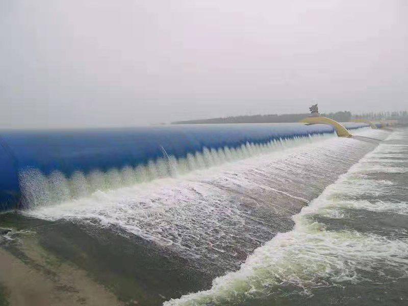 橡膠壩,又稱橡膠水閘,是用高強(qiáng)度合成纖維織物做受力骨架,內(nèi)外涂敷橡膠作保護(hù)層,加工成膠布,再將其錨固于底板上成封閉狀的壩袋,通過充排管路用水(氣)將其充脹形成的袋式擋水壩。壩頂可以溢流,并可根據(jù)需要調(diào)節(jié)壩高,控制上游水位,以發(fā)揮灌溉、發(fā)電、航運(yùn)、防洪、擋潮等效益。